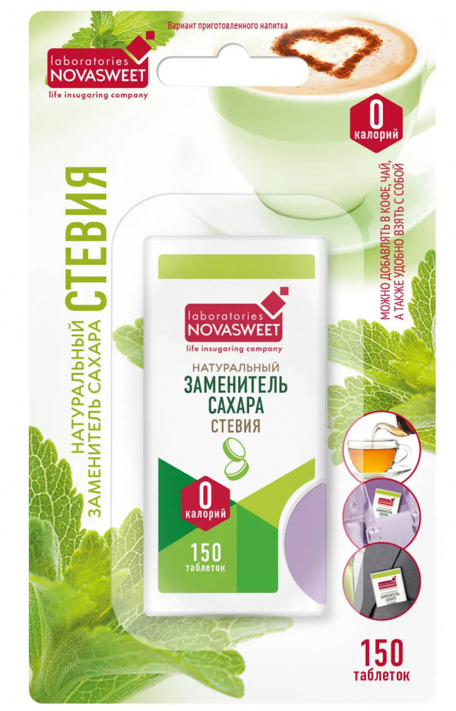 Подсластитель столовый Заменитель Сахара Novasweet® Stevia 150 таб.
