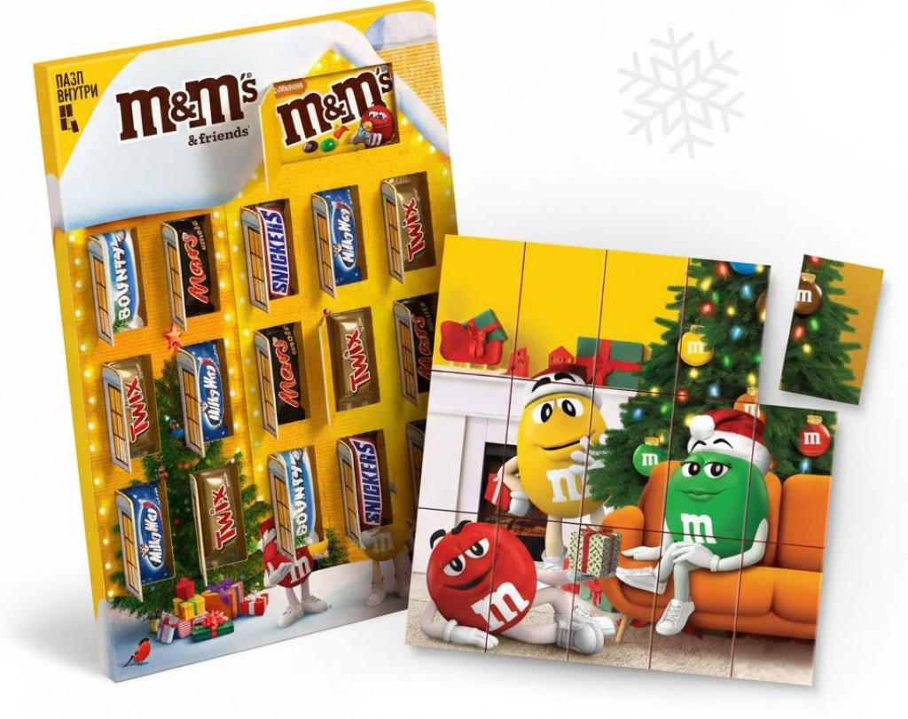Яркая упаковка с любимыми героями M&M's сделает каждый день ожидания праздника особенным и наполнит его волшебством;