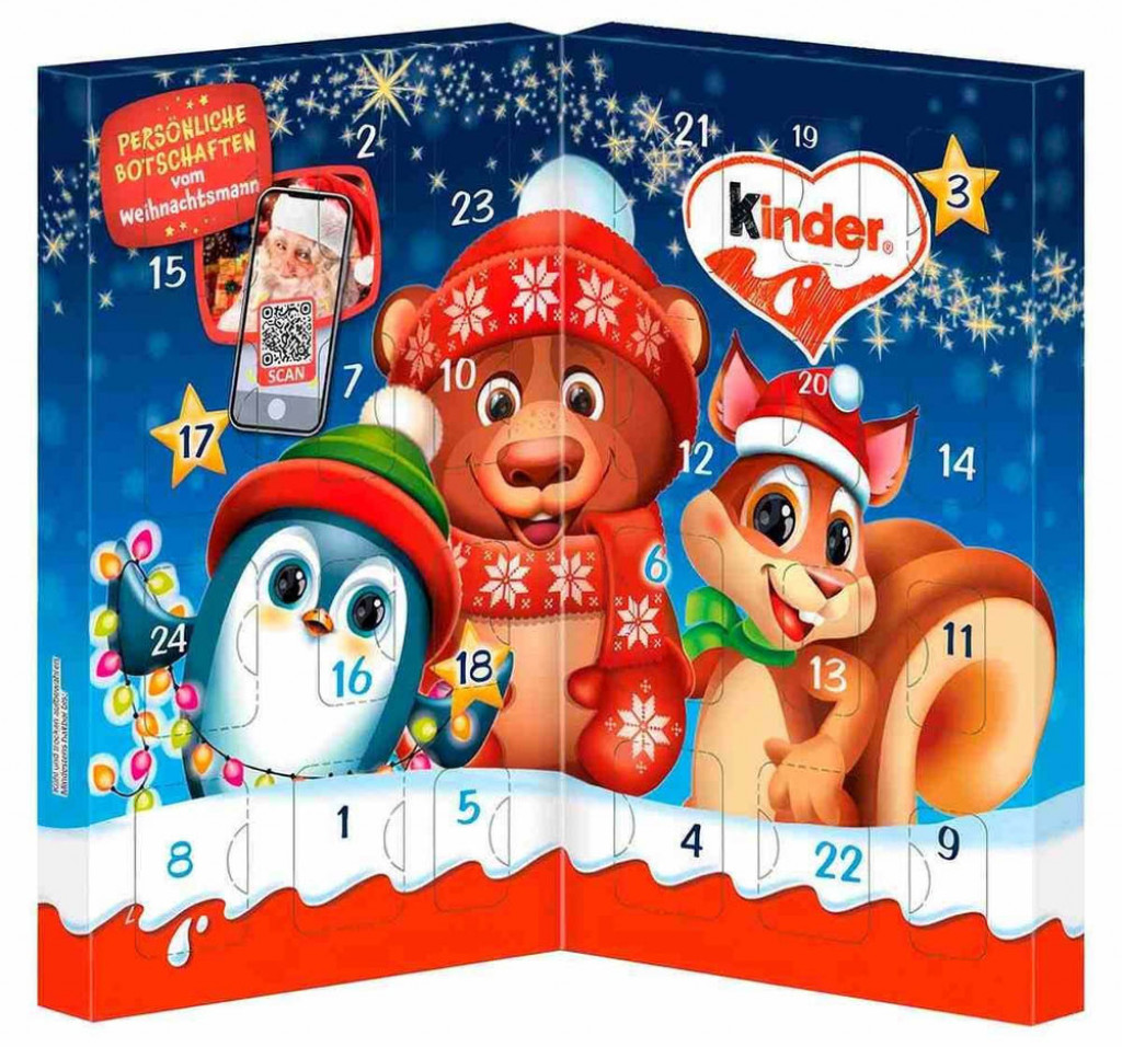 Сладкий адвент календарь киндер прекрасный подарок для вашего ребенка. Сладкий набор конфет подарит дух ожидания всеми любимого праздника. Адвент-календарь Kinder подойдет и взрослым, с ним вы окунетесь в то самое, волшебное время. Все эти сладости из Европы. В новогоднем календаре Kinder 24 окна с продуктом. Открывайте по одному окошку каждый день, находите спрятанные подарки и погружайтесь в виртуальный новогодний мир Kinder. Новогодний календарь Kinder сделает предвкушение Нового Года по-настоящему весёлым и сказочным