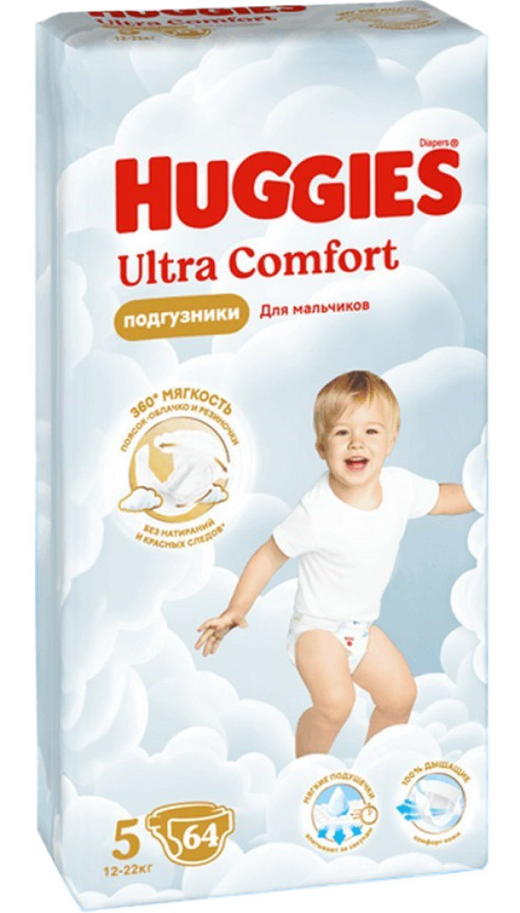 Подгузники Huggies Ultra Comfort 5 для мальчиков (12-22 кг) - 64 шт.