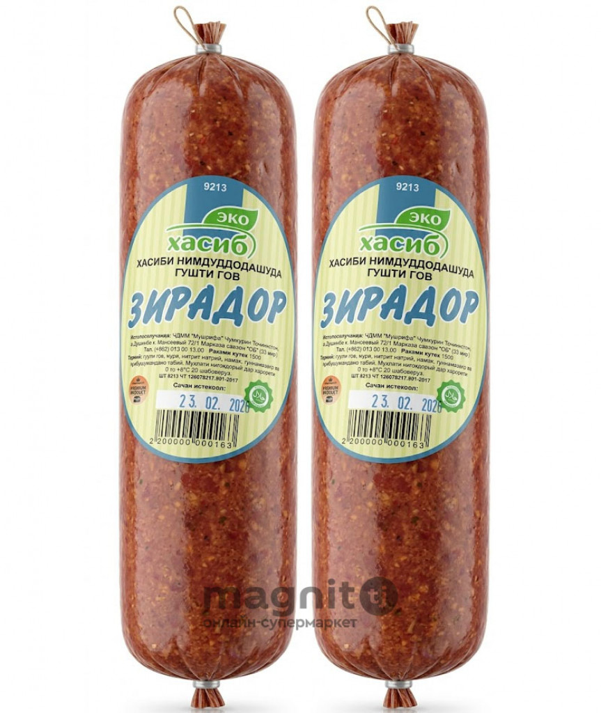 Полукопченая колбаса «Зирадор» от «Эко Хасиб» — это эксклюзивный продукт, созданный для истинных ценителей качества и традиций. Это единственное колбасное изделие, которое полностью изготавливается вручную, что позволяет сохранить домашний вкус и безупречную текстуру мяса.
