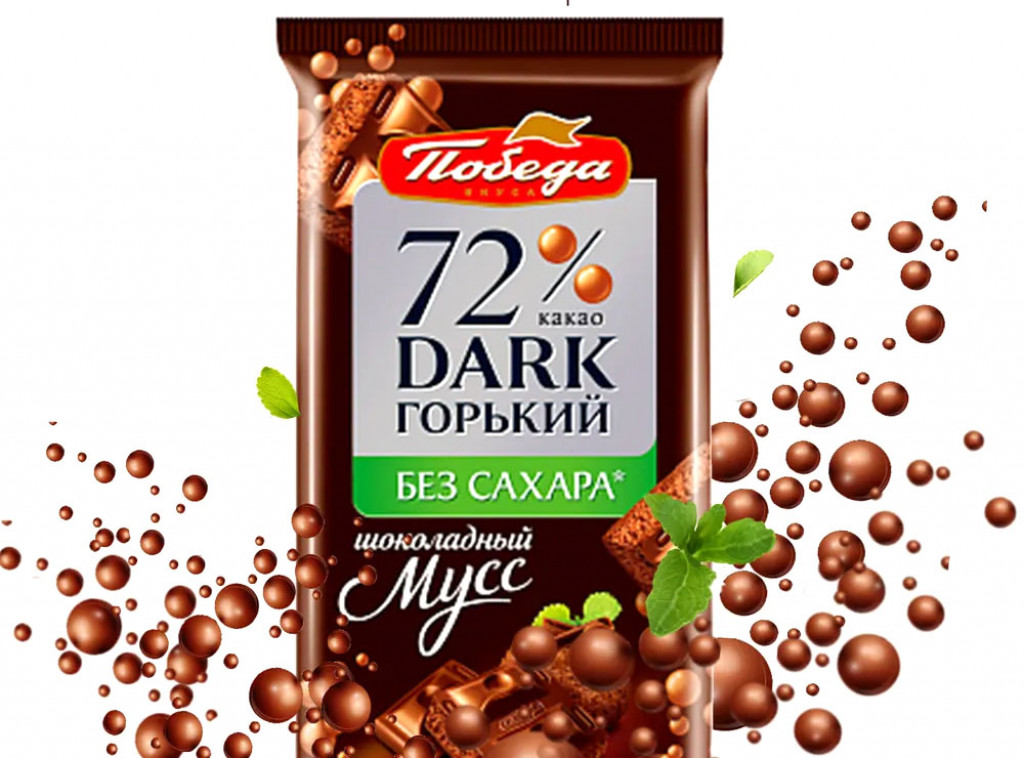 Пористый Шоколад Победа Dark Горький без сахара 72% какао Шоколадный Мусс 65 г