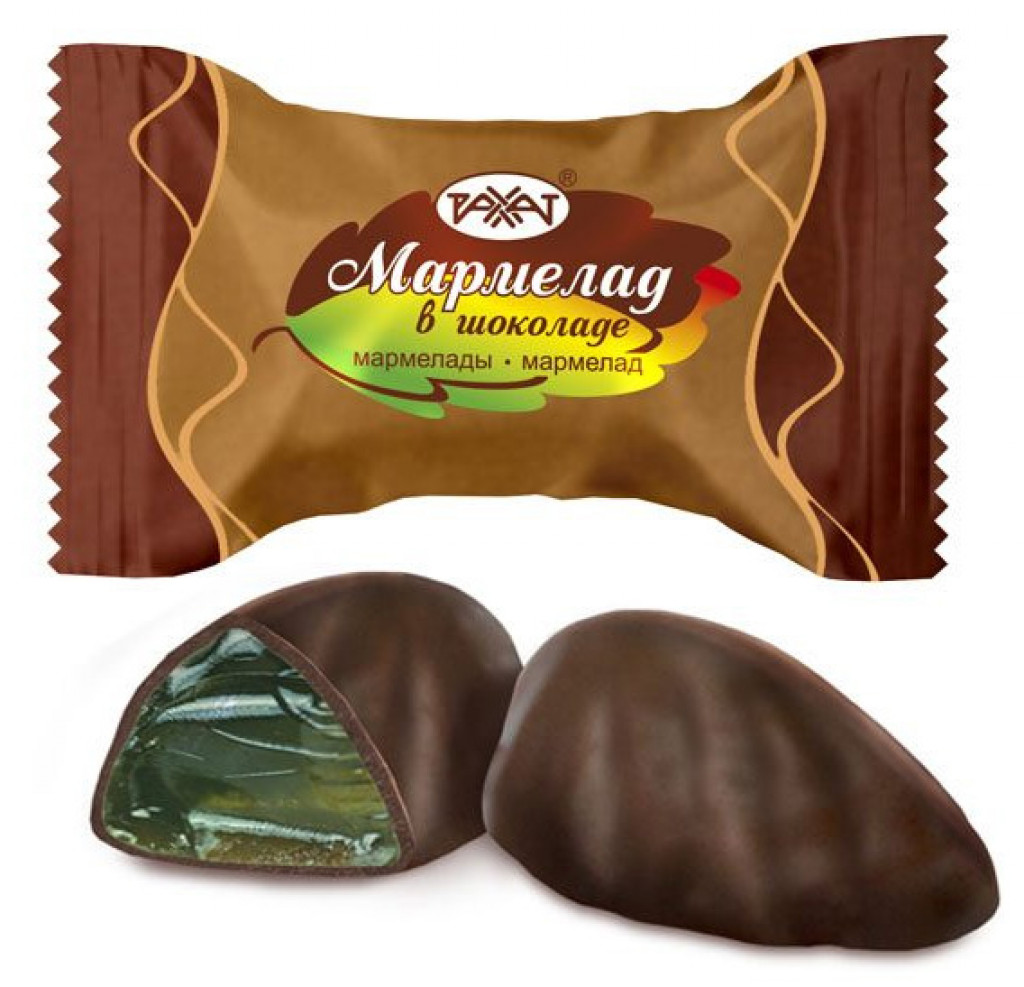 Мармелад различных цветов со вкусом фруктов и ягод, глазированный шоколадной глазурью.