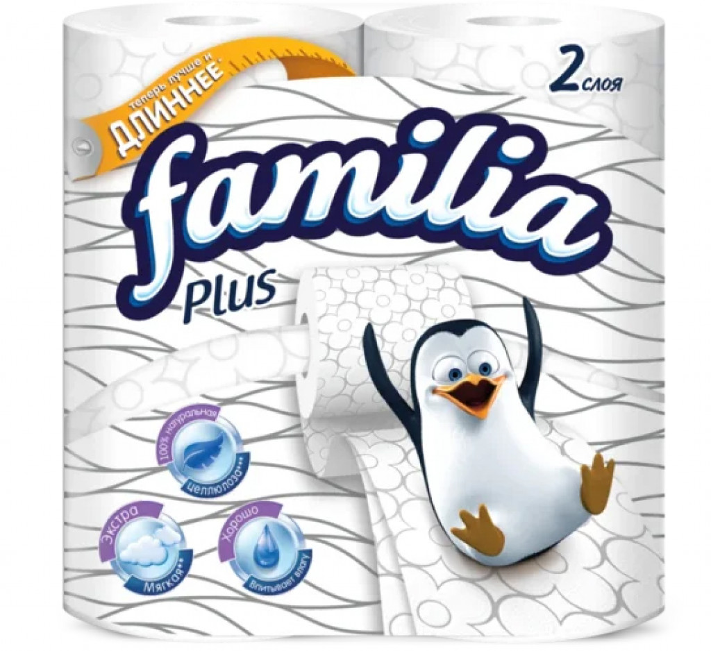 Туалетная бумага Familia Plus Белая, 2 слоя 4 шт.